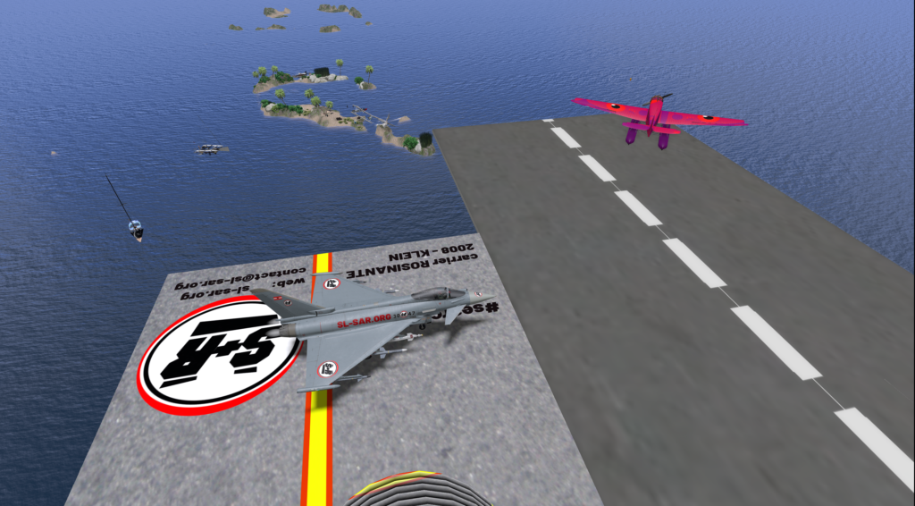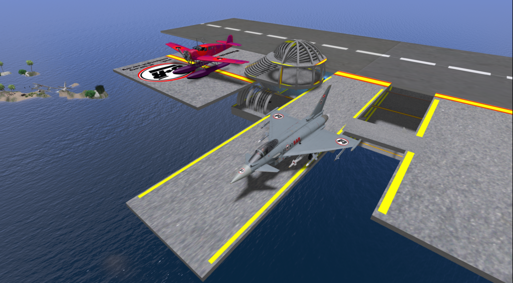 An Eurofighter, one Harrier and a Junkers waterplane are at the ready to keep the Blake Sea and Sirens Isle a safe and secure environment (SASE)